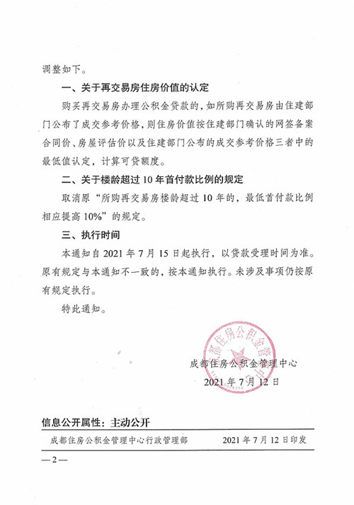 同時,對于購買再交易房辦理公積金貸款的,如所購再交易房由住建部門公布了成交參考價格,則住房價值按住建部門確認(rèn)的網(wǎng)簽備案合同價、房屋評估價以及住建部門公布的成交參考價格三者中的最低值認(rèn)定,計算可貸額度。該政策自2021年7月15日起執(zhí)行,以貸款受理時間為準(zhǔn)。