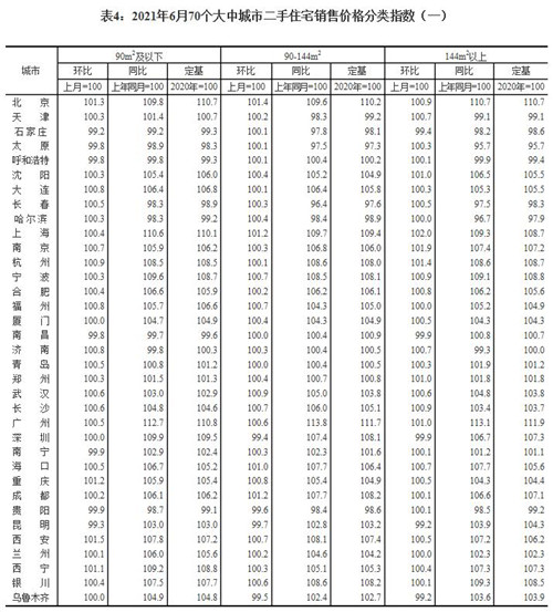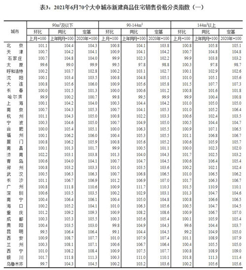 房訊網(wǎng)訊 今日,國家統(tǒng)計(jì)局發(fā)布2021年6月份70個(gè)大中城市商品住宅銷售價(jià)格變動(dòng)情況。