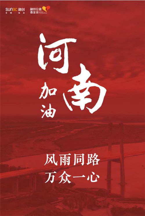 融創(chuàng)集團(tuán)表示:風(fēng)雨無情人有情,融創(chuàng)中國向奮斗在救災(zāi)一線的各行業(yè)工作人員致敬,相信河南人民一定能打贏這場救災(zāi)戰(zhàn)役。河南加油!