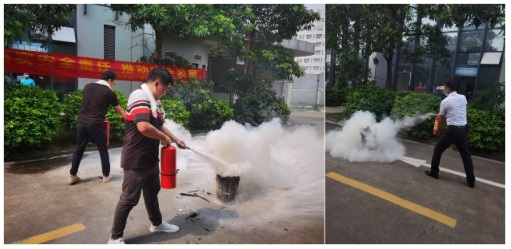滅火過(guò)程中,由物業(yè)專(zhuān)業(yè)操作人員示范滅火器的使用方法和技巧,全員逐一進(jìn)行滅火操作。