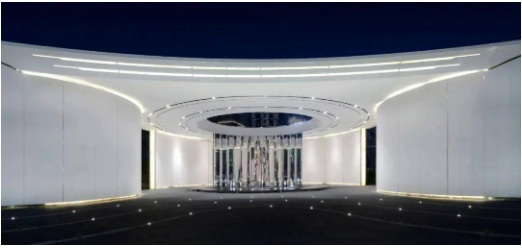極簡素凈的星河之始,設(shè)計以曲線和曲線的二元性構(gòu)成,柔滑的白沙米黃優(yōu)雅寧靜,隨弧線蔓延,環(huán)抱式的空間隔離城市喧囂,90°交錯不銹鋼鏡面隨著人的移動閃耀變幻,映襯星空下的波瀾,遠望星河靜謐悠遠,實則靈動清韻。