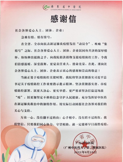 近日,廣東省中醫(yī)院楊志敏副院長(zhǎng)再次蒞臨越秀住房租賃公司旗下越秀星寓荔灣花海店,送來(lái)廣東省中醫(yī)院的感謝信,對(duì)越秀星寓在疫情封控期間伸出援助之手,為廣東省中醫(yī)院芳村醫(yī)院醫(yī)護(hù)人員免費(fèi)提供30間公益住所,免除抗疫醫(yī)務(wù)人員后顧之憂,全心全意投入到抗疫工作中表達(dá)衷心感謝和崇高的敬意。