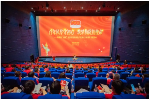 合唱結(jié)束后,黨員團(tuán)體在影院觀看獻(xiàn)禮建黨100周年電影《1921》,該片講述了首批中國(guó)共產(chǎn)黨人,在風(fēng)雨如磐的日子中擔(dān)起了救亡圖存重任,讓中國(guó)革命前途煥然一新的故事。一百年風(fēng)雨兼程,一百年砥礪前行。這是一段矢志不渝不懈奮斗的偉大歷程,這是一段奮進(jìn)開(kāi)拓走向勝利的偉大歷程。