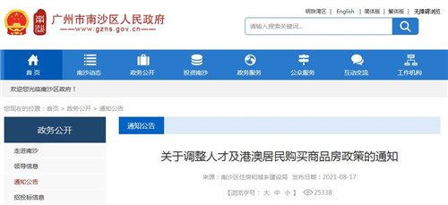 此外,港澳居民在南沙區(qū)范圍內(nèi)購買商品房享受與廣州市戶籍居民同等待遇。
