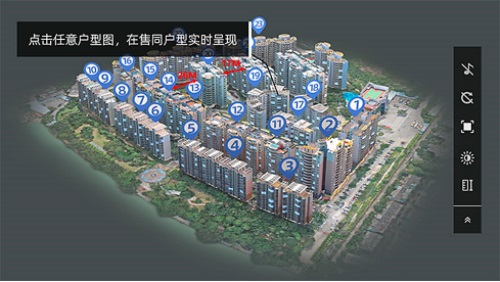 2、三維還原技術(shù)應(yīng)用小區(qū)樓盤外景——信息觸手可及,樓盤屬性一目了然