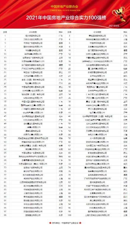 近日,2021年中國(guó)房地產(chǎn)業(yè)綜合實(shí)力100強(qiáng)排行榜發(fā)布,這是中國(guó)房地產(chǎn)業(yè)聯(lián)合會(huì)對(duì)房地產(chǎn)行業(yè)進(jìn)行全面、科學(xué)、獨(dú)立的企業(yè)實(shí)力發(fā)展調(diào)查研究宣傳發(fā)布工作。通過(guò)對(duì)全國(guó)34個(gè)。▍^(qū)、市)超過(guò)3000家利潤(rùn)總額在1億元至800億元之間的中國(guó)房地產(chǎn)開(kāi)發(fā)企業(yè)進(jìn)行了數(shù)據(jù)采集研究,比照國(guó)際上通行的做法,主要根據(jù)營(yíng)業(yè)收入、資產(chǎn)總額、利潤(rùn)總額、資信等級(jí)、社會(huì)貢獻(xiàn)、業(yè)主滿意度等指標(biāo)分析確定候選企業(yè),邀請(qǐng)100位企業(yè)高管、學(xué)者及官員對(duì)經(jīng)資格審核符合要求的企業(yè)進(jìn)行綜合評(píng)分,并對(duì)部分候選企業(yè)進(jìn)行實(shí)地拜訪,從中遴選出100家中國(guó)房地產(chǎn)業(yè)綜合實(shí)力100強(qiáng)企業(yè)。在此基礎(chǔ)上通過(guò)與世界500強(qiáng)企業(yè)進(jìn)行綜合對(duì)比分析,進(jìn)而有針對(duì)性地提出促進(jìn)中國(guó)房企做強(qiáng)做大做久的策略建議,在全國(guó)范圍內(nèi)形成了巨大的社會(huì)影響力。