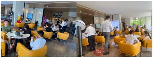 為讓綠地景觀最大化,江灣印月創(chuàng)著約2500㎡森韻聚場中庭,包含約300㎡超大水景。中庭以度假水景與HUB會客廳為中心,前場打造度假風(fēng)情,后場結(jié)合休憩、頤養(yǎng)、兒童游樂等形成融合聚場場景。