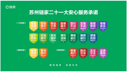 針對行業(yè)不規(guī)范作業(yè)行為,會上,蘇州鏈家發(fā)布了升級后的21大品牌服務(wù)承諾,包括“傭金差價,吃一賠三”等15項(xiàng)二手交易服務(wù)承諾、“陽光交易,0服務(wù)費(fèi)”等4項(xiàng)新房交易服務(wù)承諾、“首月解約,退換租金”等2項(xiàng)租賃交易服務(wù)承諾,為交易安全保駕護(hù)航。