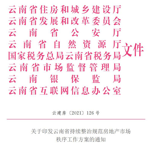 為深入貫徹落實(shí)黨中央、國(guó)務(wù)院,省委、省政府關(guān)于促進(jìn)房地產(chǎn)市場(chǎng)平穩(wěn)健康發(fā)展的決策部署,聚焦人民群眾反映強(qiáng)烈的難點(diǎn)和痛點(diǎn)問題,加大房地產(chǎn)市場(chǎng)秩序整治力度,切實(shí)維護(hù)人民群眾合法權(quán)益,為我省全面高質(zhì)量發(fā)展?fàn)I造良好的社會(huì)環(huán)境,按照住房和城鄉(xiāng)建設(shè)部、國(guó)家發(fā)展改革委、公安部、自然資源部、稅務(wù)總局、市場(chǎng)監(jiān)管總局、銀保監(jiān)會(huì)、國(guó)家網(wǎng)信辦 《關(guān)于持續(xù)整治規(guī)范房地產(chǎn)市場(chǎng)秩序的通知》 (建房 〔2021〕55號(hào))有關(guān)要求,省住房城鄉(xiāng)建設(shè)廳、發(fā)展改革委、公安廳、自然資源廳、稅務(wù)局、市場(chǎng)監(jiān)管局、云南銀保監(jiān)局、網(wǎng)信辦決定,持續(xù)開展整治規(guī)范房地產(chǎn)市場(chǎng)秩序工作 (以下簡(jiǎn)稱整治工作),F(xiàn)制定如下工作方案。