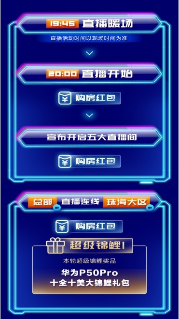 華為P50 Pro 、超級大錦鯉、高級酒店套房、經(jīng)典演出門票、9.19元享珠海明星樓盤1%折扣、限量10000元車位抵扣券、10套超值特價房等超級福利!