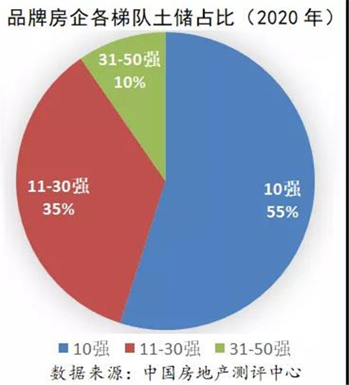 另一方面,優(yōu)質(zhì)的品牌有助于企業(yè)的市場開拓。品牌房企憑借較強的資源獲取能力,優(yōu)勢明顯。截至2020年末,50強品牌房企總土儲面積為7.48億平方米,貨值存量維持較高水平,未來幾年依然有能力保持平穩(wěn)發(fā)展。從各梯隊分布來看,10強品牌房企土儲面積占比54%,保持較高話語權(quán),強者恒強的趨勢有望持續(xù),11-30強、31-50強品牌房企土儲面積占比分別為34%、12%。