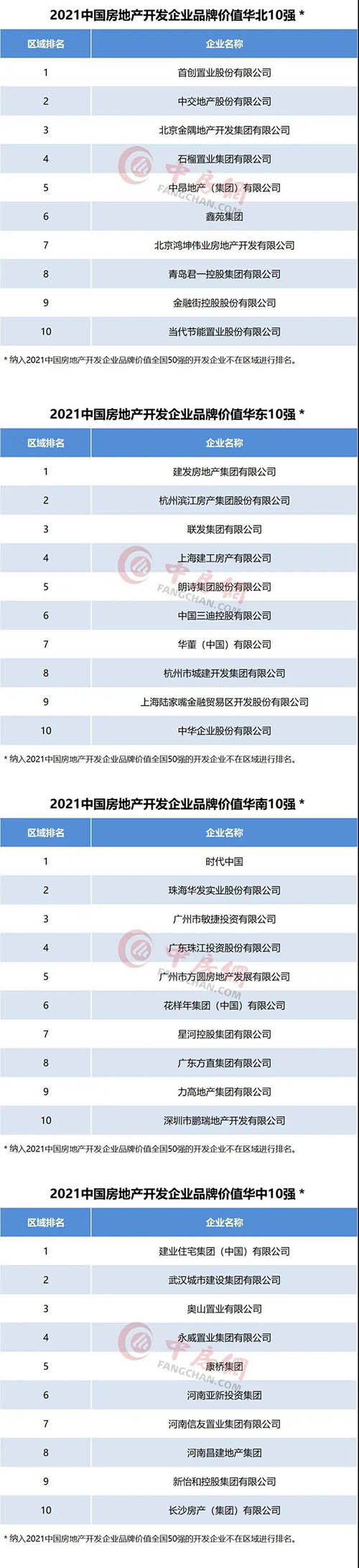 2021中國房地產(chǎn)開發(fā)企業(yè)品牌價值系列榜單