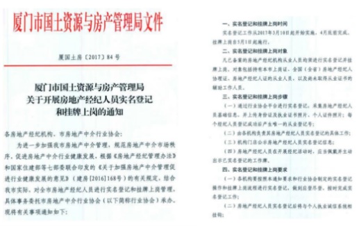 一直以來,為了盡可能多地抓住潛在客戶,一系列違規(guī)現(xiàn)象屢見不鮮,如:房源或價格造假、重復錄入房源信息等,“虛假房源”可以說是中介行業(yè)長期存在的“頑疾”。而為提高市場房源信息真實性,規(guī)范從業(yè)人員行為,廈門市主管部門于2017年就曾發(fā)布《關(guān)于嚴格執(zhí)行廈門市存量房房源發(fā)布實施房源信息編碼規(guī)定的通知》、《關(guān)于開展房地產(chǎn)經(jīng)紀人員實名登記和掛牌上崗的通知》,嚴格執(zhí)行房地產(chǎn)經(jīng)紀機構(gòu)及其網(wǎng)站發(fā)布存量房房源信息必須標明房源信息編碼的規(guī)定,從業(yè)人員須實名登記并掛牌上崗。