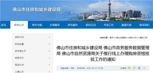 佛山市住房和城鄉(xiāng)建設(shè)局 佛山市政務(wù)服務(wù)數(shù)據(jù)管理局 佛山市自然資源局關(guān)于推行線上辦理購(gòu)房資格核驗(yàn)工作的通知