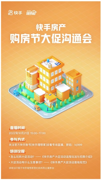 隨著各地相繼出臺一攬子政策刺激樓市,在線上電商流量爆發(fā)期即將到來之際,快手房產(chǎn)將聯(lián)動房產(chǎn)機(jī)構(gòu)、房產(chǎn)主播與開發(fā)商合力打造年末房產(chǎn)大促活動“快手購房節(jié)”。據(jù)悉,此次“快手購房節(jié)”將于11月18日至12月18日正式開啟,目前招商工作正在火熱進(jìn)行中。