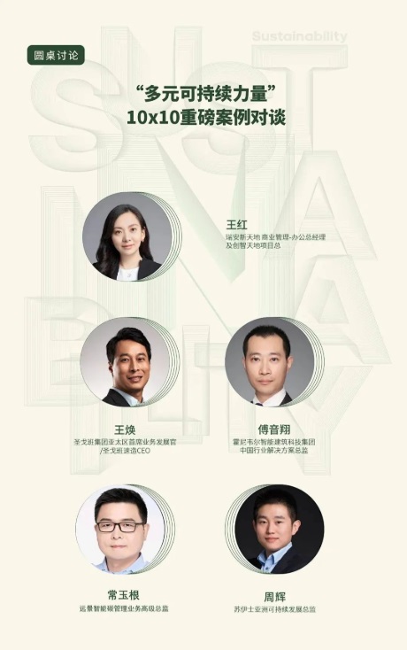 “10x10”企業(yè)案例代表也來(lái)到現(xiàn)場(chǎng),在瑞安新天地商業(yè)管理-辦公總經(jīng)理及創(chuàng)智天地項(xiàng)目總王紅的主持下,一場(chǎng)“多元可持續(xù)力量”的圓桌討論展開。