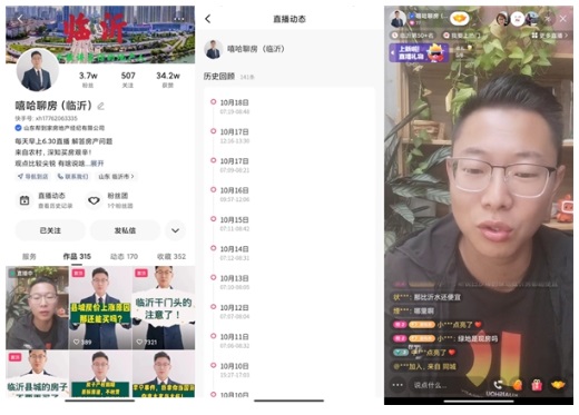 通過門店獲客越來越難,想干好房產(chǎn)行業(yè)必須尋找新渠道。期間,他關(guān)注到臨沂比較知名的主播@房產(chǎn)咨詢趙鳳艷,得知她在快手一場(chǎng)直播能獲客10到20組,每個(gè)月成交5到10套房子,嘻哈聊房意識(shí)到自己必須學(xué)習(xí)直播賣房。