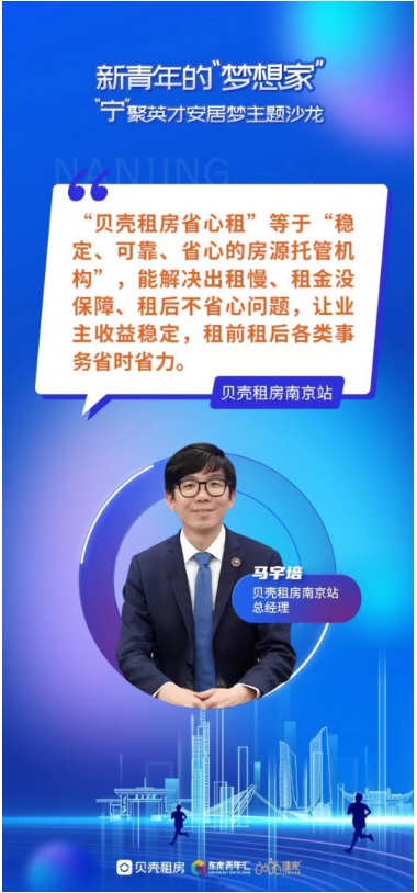 如何提升租住體驗(yàn),助力實(shí)現(xiàn)住有所居、住有宜居,是貝殼著力探索的方向之一。11月18日下午,在南京報(bào)業(yè)傳媒大廈舉行的新青年的“夢(mèng)想家”——“寧”聚英才安居夢(mèng)主題沙龍上,貝殼租房南京站總經(jīng)理馬宇培現(xiàn)場(chǎng)推介今年貝殼租房新推出的“新青年計(jì)劃”,并以《讓租房成為一種美好生活方式》為題作分享交流。
