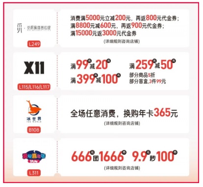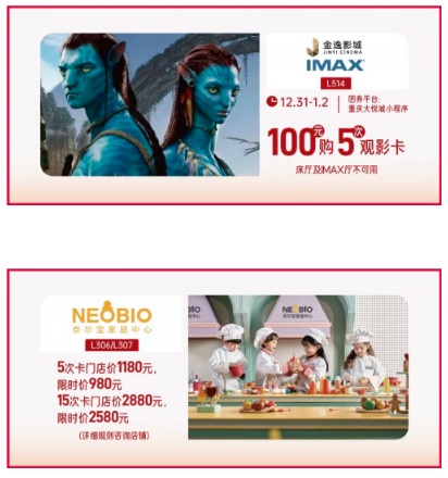 100元購5次觀影卡、任意消費(fèi)換購年卡、99元購3件盲盒……重慶大悅城各大城市級門店在活動期間也給出了給力的優(yōu)惠力度。例如全球潮玩集合品牌X11重慶首店推出滿99元減20元、部分商品5折、部分盲盒3件99元等優(yōu)惠,喜愛盲盒、手辦的消費(fèi)者可別錯過;還有重慶首店、一站式家庭中心奈爾寶推出原價1180元5次門店卡現(xiàn)只需980元,趕緊為寶寶囤起來……