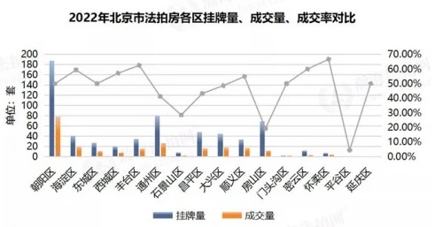 截止到2022年1月31日,北京市法拍房市場(chǎng)有效待拍法拍房源共425套,其中住宅233套、別墅36套、商辦156套,平均每日15套,起拍折扣6.8折其中,朝陽(yáng)區(qū)以154套掛牌量位居榜首;起拍折扣最低為平谷區(qū)5.8折。