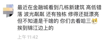 據這位粉絲描述,相較金融城清一色高聳入云的建筑天際,這片建筑呈“高低錯落”分布,其中甚至有“獨棟”樣式,在寸土寸金的金融城,不可謂不奢侈。