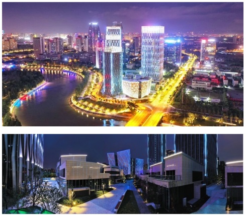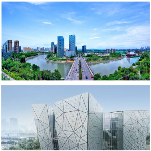 金融城文化中心效果圖與交子金融博物館實景