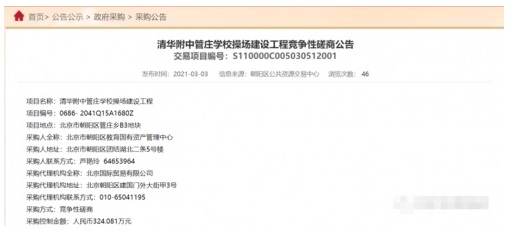從朝陽區(qū)公共資源交易中心3月3日發(fā)布的信息,了解到清華附中管莊學(xué)校操場建設(shè)工程競爭性磋商公告。