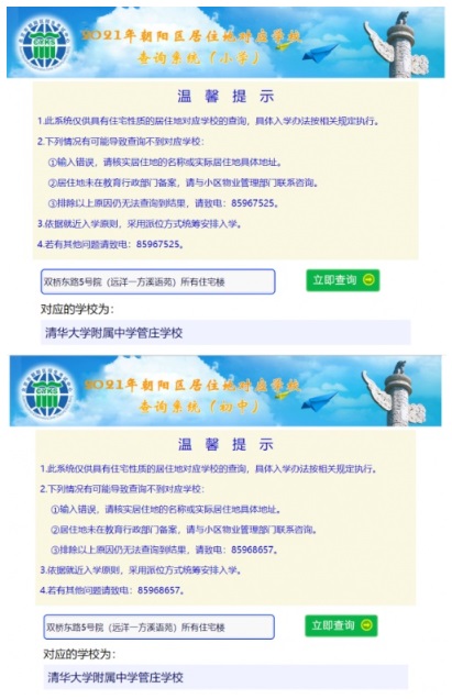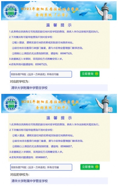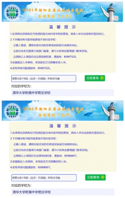 第一步:北京市朝陽區(qū)招生考試中心,官方查詢,小學(xué)與初中居住地對應(yīng)學(xué)校: