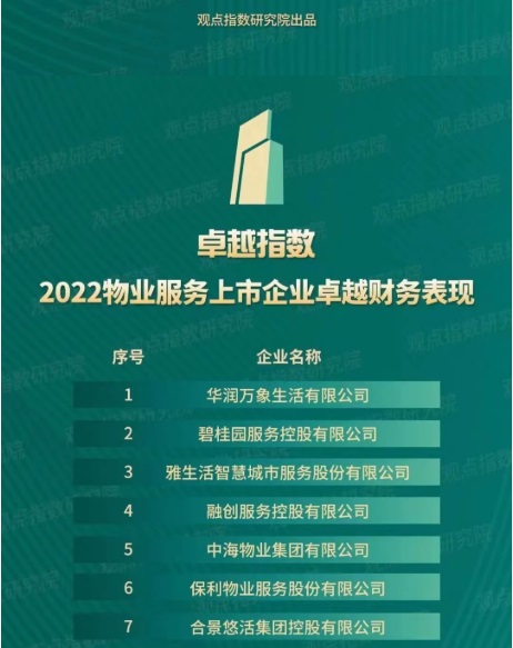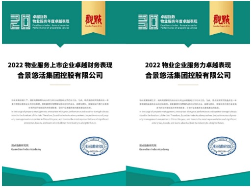 合景悠活集團憑借高品質(zhì)的服務(wù)力及優(yōu)異的財務(wù)數(shù)據(jù),分別入選“2022物業(yè)企業(yè)服務(wù)力卓越表現(xiàn)” “2022物業(yè)服務(wù)上市企業(yè)卓越財務(wù)表現(xiàn)”,分別位列第8名、第7名和第16名,實力得到業(yè)界廣泛認可。