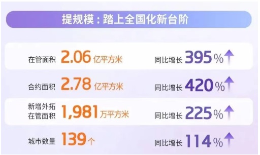 合景悠活2021年年度業(yè)績報告顯示,截至2021年12月31日,合景悠活已進駐全國20個省、自治區(qū)與直轄市的139個城市,在管面積達到2.06億平米,同比增長395%;合約面積達到2.78億平米,同比增長420%?缭绞降臉I(yè)績增長及大規(guī)模的業(yè)態(tài)擴張,體現(xiàn)了合景悠活充足的成長動能。