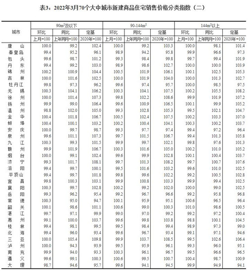 4月15日,國家統(tǒng)計局發(fā)布2022年3月份70個大中城市商品住宅銷售價格變動情況。