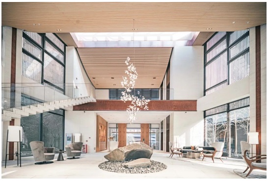 這里的精髓可以用一個詞來概括:四谷三庭。寓意一方天地間,感受四季變幻的絕美風(fēng)景,塑造三重歸家禮序。由西至東,四條綠廊與一條水軸貫穿樓宇之間,分別命名為「春之谷」、「夏之谷」、「秋之谷」和「冬之谷」,搭配種植了各個季節(jié)的時令植株。