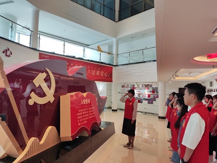 活動(dòng)開始,臺(tái)江區(qū)茶亭街道黨工委組織委員、臺(tái)江區(qū)世茂國(guó)際中心樓宇黨委書記林曉芬?guī)ьI(lǐng)全體黨員面對(duì)鮮紅的黨旗,右手握拳,重溫入黨誓詞。錚錚誓言,是每位黨員對(duì)黨最深情的告白。