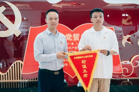 現(xiàn)場(chǎng),世茂天成物業(yè)服務(wù)集團(tuán)有限公司福州分公司黨支部與雅林集團(tuán)黨支部進(jìn)行了世茂國(guó)際中心樓宇黨委“輪值主席”流動(dòng)紅旗交接儀式。