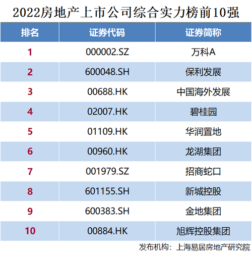 根據《2022房地產上市公司測評研究報告》顯示,10強上市房企排名出現變化。其中,萬科繼續(xù)蟬聯榜首;保利發(fā)展、中國海外發(fā)展位列第二、三名,排名較上年均有提升;碧桂園位列第四名;華潤置地、龍湖集團、招商蛇口、新城控股分列第五、六、七、八名,排名較上年均有提升;金地集團、旭輝控股集團位列第九、十名,為2022年新晉10強。