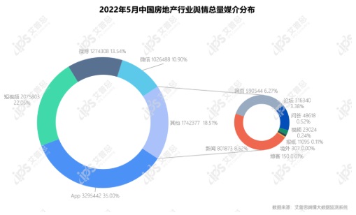 2022年5月中國(guó)房地產(chǎn)行業(yè)輿情總量媒介分布