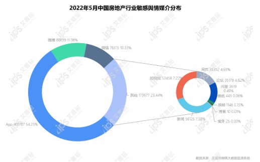 2022年5月中國(guó)房地產(chǎn)行業(yè)敏感輿情媒介分布