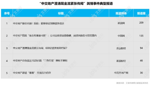 “中交地產(chǎn)澄清現(xiàn)金流緊張傳聞”輿情事件典型報(bào)道