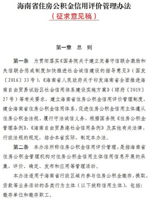據(jù)海南省住房和城鄉(xiāng)建設(shè)廳網(wǎng)站消息,海南住房公積金管理委員會辦公室日前公布《海南省住房公積金信用評價管理辦法(征求意見稿)》,向社會公開征求意見。