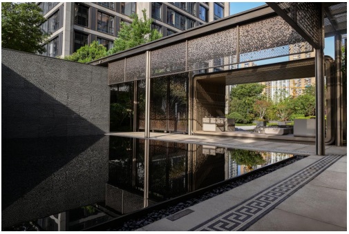在景觀細節(jié)上,項目既有遵循中式庭院的造景手法,強調(diào)自然式的疊山理水而打造的靜謐溫馨交流空間;又有運用充滿外灘韻味的紅磚元素,承載英式文化和藝術美學,打造而成的英式花園;更有取自備受喜愛的枯山水景觀藝術手法打造的茗松庭院,營造禪意氣質(zhì)空間。