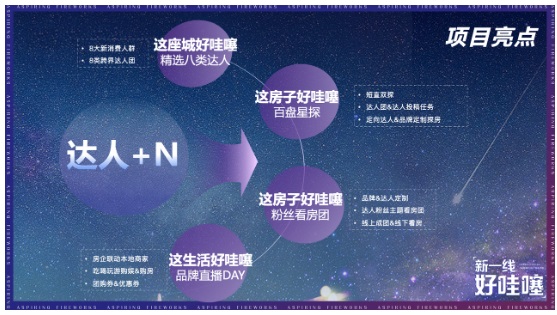 活動以“達(dá)人+N”為核心,組合垂類跨界達(dá)人圈選、短視頻直播探盤、團(tuán)購錨點留資、線下粉絲團(tuán)引流等模式,促進(jìn)達(dá)人內(nèi)容品效營銷,共同探索新一線城市哇噻的房子與生活,強(qiáng)力提升華中區(qū)域市場聲量。