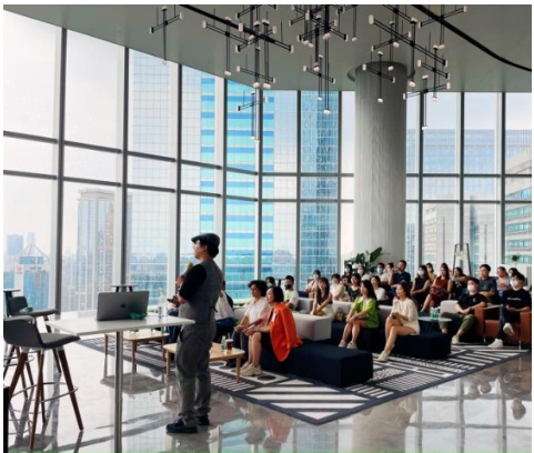 歐西深知用戶需求,匠心打造歐西廣州環(huán)貿(mào)中心,集辦公、生活、社交于一體,辦公工位與公共空間面積占比五五分,絕佳的地理位置加之700平米城市會(huì)客廳公域面積,360度幕墻,視野拉滿的超高挑高層的空間結(jié)構(gòu),讓這里成為天然的社群活動(dòng)聚集地。