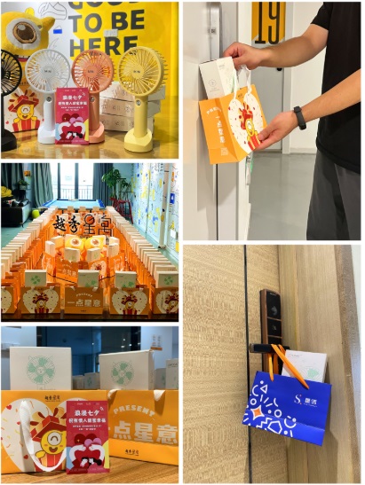 七夕悄然已至,越秀住房租賃公司旗下越秀星寓、星鄰各門店管家化身七夕“丘比特”,為星友租客們制造七夕的浪漫驚喜和“星”動相“寓”。他們不辭辛苦,親自打包一一上門為每位星友租客送上節(jié)日甜蜜“星”意。時尚高顏值的小風(fēng)扇,即是炎炎夏日上班通勤路上的貼心降暑神器,搭配CP匹配卡就是寓意能吹來愛情,為星友們打開一“扇”幸福門的美好神器。