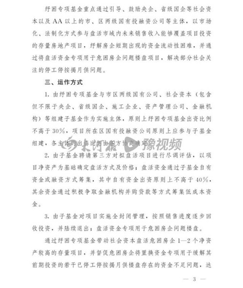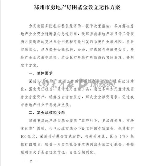 鄭州近日出臺(tái)房地產(chǎn)紓困基金設(shè)立運(yùn)作方案,暫定規(guī)模100億元,通過盤活資金專項(xiàng)用于危困房企問題樓盤項(xiàng)目,解決部分社會(huì)關(guān)注的停工停按揭月供問題,穩(wěn)經(jīng)濟(jì),促發(fā)展。