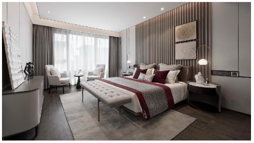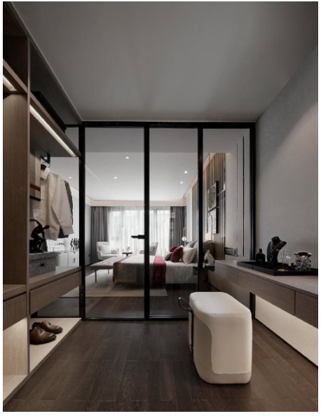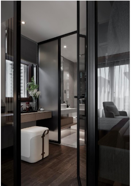 一層套房在空間的把控和使用上,實(shí)現(xiàn)的是一種哲思上的自我界限感,界而未界,無(wú)形卻清晰。設(shè)計(jì)利用材質(zhì)的通透性去突破功能之間的束縛,簡(jiǎn)而不凡,松弛愜意。