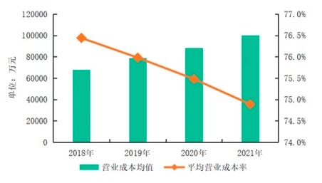 圖:2018-2021年百?gòu)?qiáng)企業(yè)營(yíng)業(yè)成本均值及平均營(yíng)業(yè)成本率情況