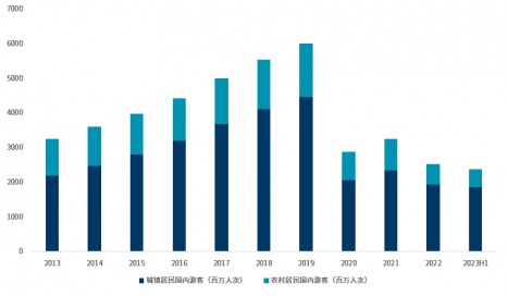 圖1:中國國內旅游情況(2013——2023上半年)