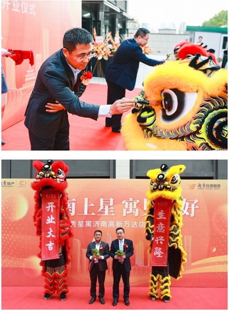 開業(yè)活動的高潮部分是熱烈的舞獅表演。在眾人的歡聲雷動中,兩只雄獅騰躍而出為大家?guī)砹艘粓鰺崃业谋硌,預(yù)兆著越秀星寓濟南高新萬達店的紅紅火火。在禮炮聲與掌聲相伴下,越秀住房租賃兼越秀星寓公司副總經(jīng)理(主持全面工作)余信遠、越秀地產(chǎn)濟南區(qū)域相關(guān)負責(zé)人楊映龍,攜手公司其他領(lǐng)導(dǎo)共同為越秀星寓濟南高新萬達店進行開業(yè)剪彩,正式揭幕越秀星寓濟南高新萬達店。