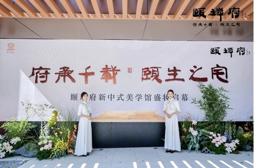 主持人邀請(qǐng)領(lǐng)導(dǎo)們共同上臺(tái)剪彩之時(shí),卷軸徐徐展開,標(biāo)志著頤瑞府新中式美學(xué)館正式亮相,全場(chǎng)氣氛達(dá)到高潮。至此,一場(chǎng)文化、藝術(shù)與匠心的盛會(huì),正式啟幕!