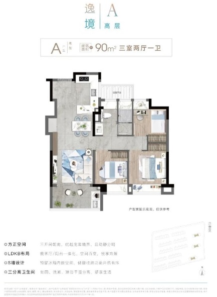 建面約90㎡的高層A戶型小戶型最令人頭疼的就是收納問(wèn)題,但是金地嘉境這次產(chǎn)品的升級(jí),無(wú)疑讓我們不用再為收納煩惱看似常規(guī)的三開(kāi)間布局,但左側(cè)入口的S型墻體設(shè)計(jì)使其大不同。創(chuàng)新改造帶來(lái)閑置墻面變?yōu)轫斕炝⒌厥占{柜的變化。入口處可規(guī)劃整體鞋柜,大S處可放置雙開(kāi)門(mén)冰箱?蛷d整面墻成為電視收納柜,空間實(shí)用性大大提升。我們把目光在聚集在衛(wèi)生間,這次他們很用心的打造了一個(gè)三分離的衛(wèi)生間,這樣的設(shè)計(jì)能讓生活品質(zhì)上升N個(gè)臺(tái)階。